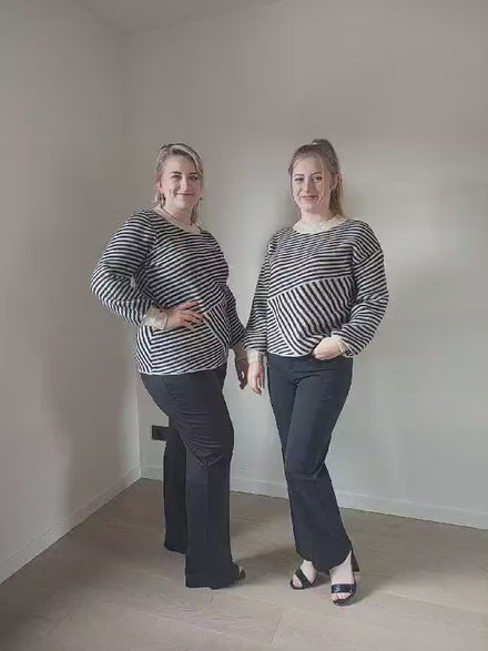 Slim fit. Elastische band. Flared broek. Valt als een soepele legging.