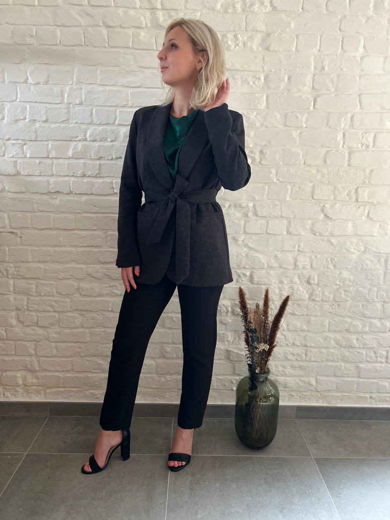 Blazer met omslag, centrale sluiting met knoop. Tailleriemdetail, voorkant opgestikte zakken. Binnenvoering. Normale pasvorm, verkrijgbaar in maat S, M, L. 100% POLYAMIDE