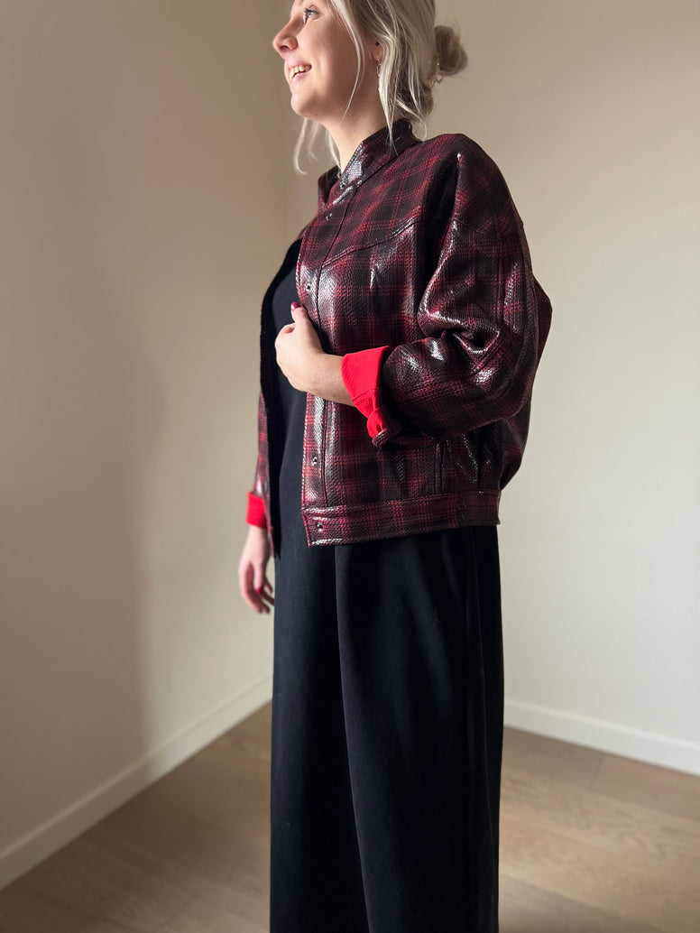 Rode dunne fleece aan de binnenkant. 100% polyester
