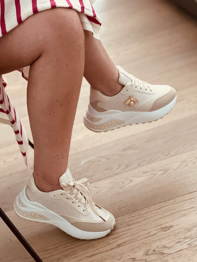 🌷Comfortabele sneaker met gouden bij en glitter.