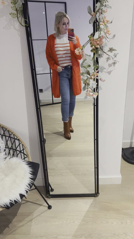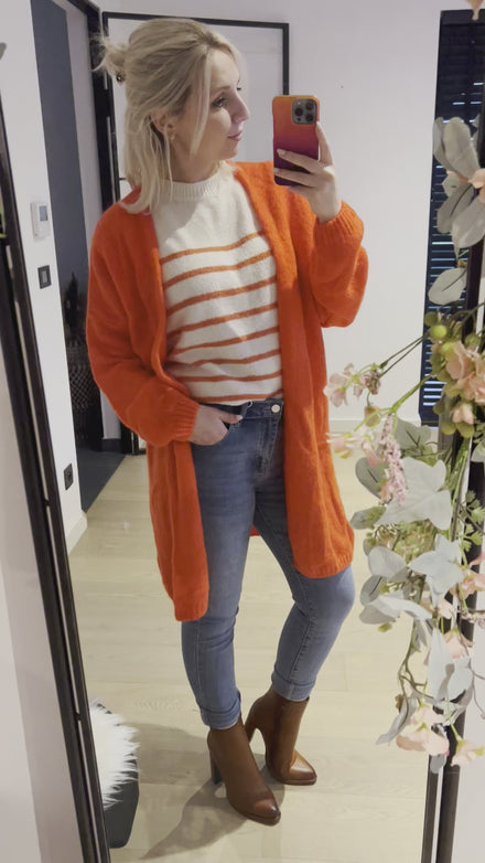MOHAIR* Mid-length open cardigan in fine knit. One size goed voor maat 36/44. Lengte vanaf schouders 90cm.