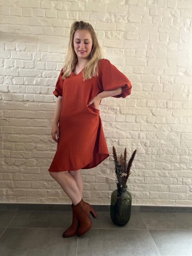 Onzichtbare zakken, pofmouwen en v-hals. 100% viscose