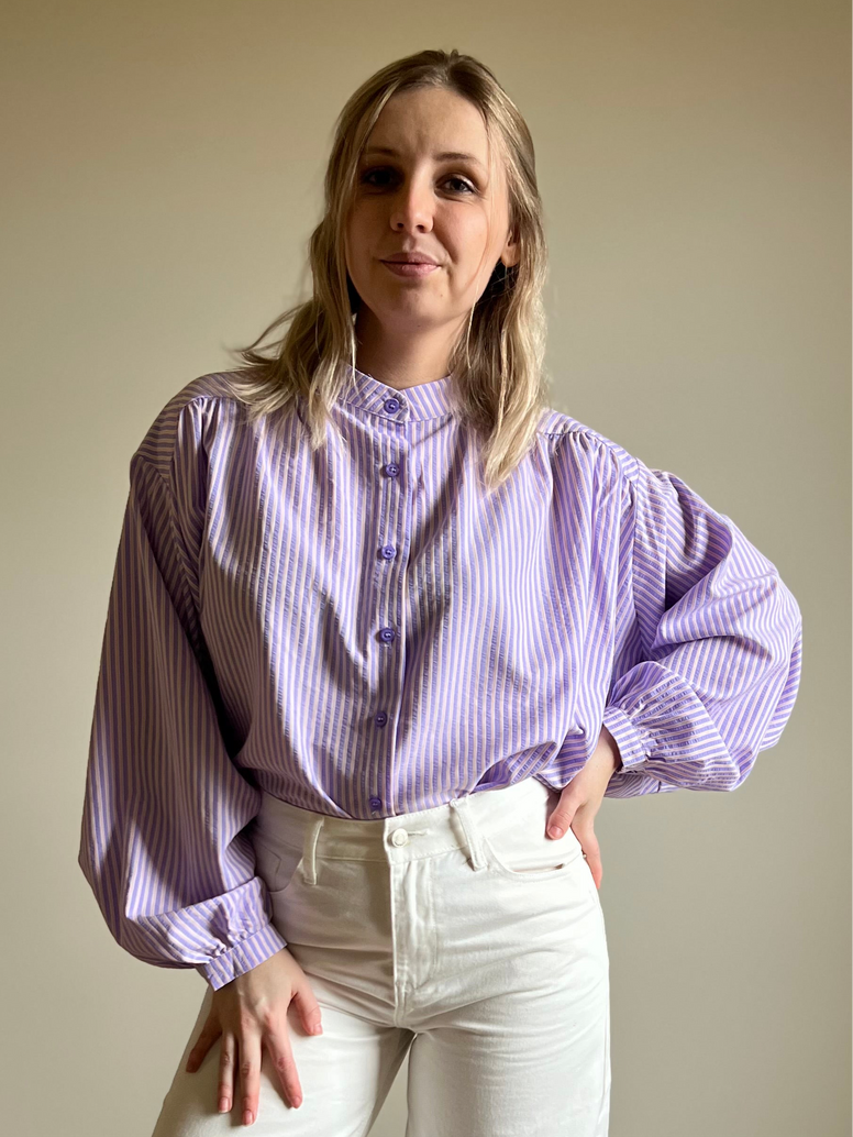 Stijlvol lila shirt gemaakt van 50% polyester en 50% katoen. Een mooie kleur die gemakkelijk te combineren is met verschillende outfits. Perfect voor een casual en comfortabele look.